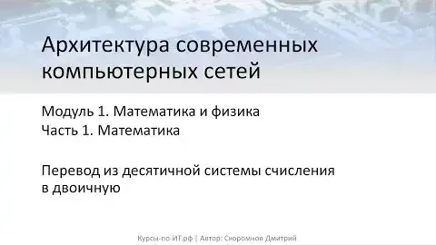 ✅ Архитектура компьютерных сетей. М-1. Т-1. У-6 – Перевод из десятичной системы счисления в двоичную